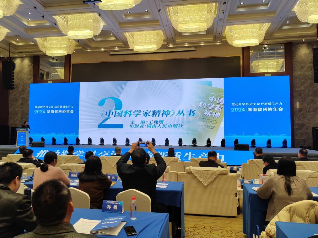 124日,2024年湖南省科协年会在长沙举行。本次年会内容丰富,形式多样,围绕湖南省主导产业和战略性新兴产业开展专题学术活动。开幕式上,发布了2024年湖南省科协“十大”科学技术问题,湖南省哲学社会科学跨学科研究“十大优秀案例”和“十大案例”,《湖南省科学技术协会关于2024年湖南省“卓越工程师”选树活动结果的通报》,以及“2024湖南省科协向读者推荐的优秀科普图书”和“2024年湖南省最佳科幻作品”。由湖南省科协组织编写,湖南省自然科学学学会研究会与湖南人民出版社共同编写的《中国科学家精神》丛书,入选2024湖南省科协向读者推荐的优秀科普图书