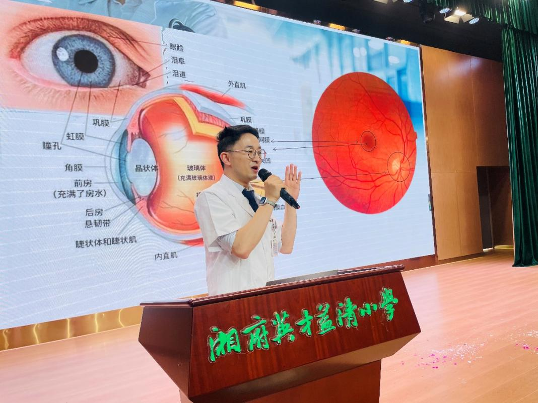 爱尔眼科医院集团股份有限公司的冉光耀博士聚焦青少年近视防控的科技手段结合当前青少年近视率高发的现状,介绍了角膜塑形镜、多焦点软性角膜接触镜等科学防控方法,强调了建立屈光发育档案、养成科学用眼习惯的重要性。在互动环节,冉光耀博士团队为学生提供了免费筛查义诊服务,通过专业检测和针对性指导,帮助同学们了解自身视力状况,掌握实用护眼技巧,增强爱眼护眼意识。