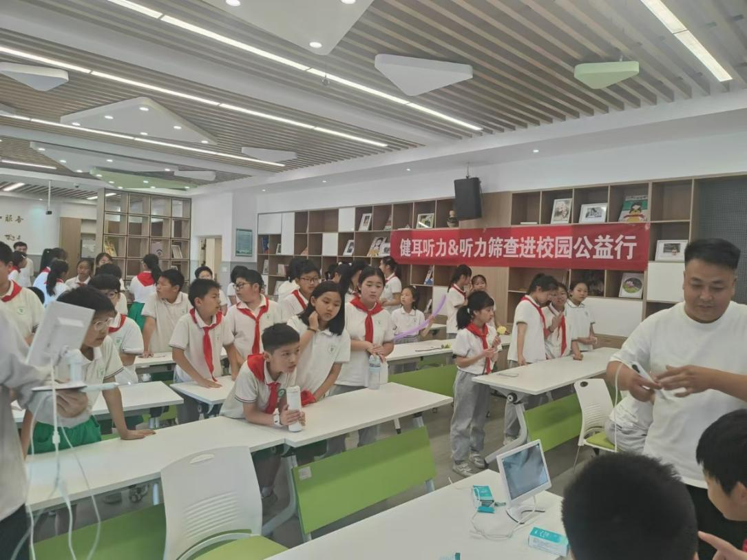 可孚医疗科技有限公司的黄俊浪老师带来了听力保健知识的科普内容。他详细讲解了耳朵的结构、听力损伤的原因及预防措施,如避免长时间佩戴耳机、减少噪音暴露等。互动环节中,黄俊浪老师带领学生学习耳保健操,并为部分学生进行了外耳道检查及测听,让学们在轻松氛围中了解听力健康知识,重视耳部保护。