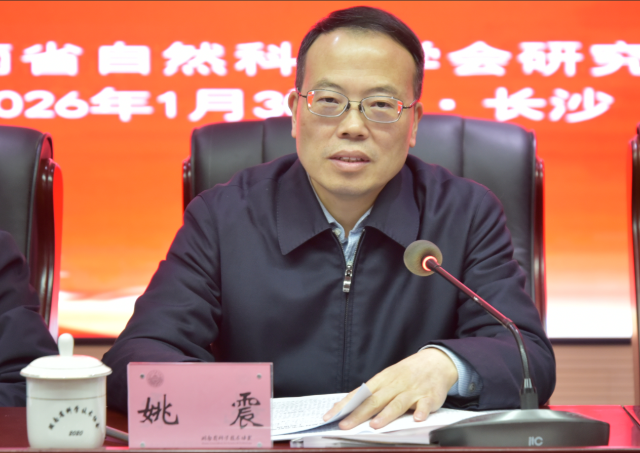 2026年1月30日上午,湖南省自然科学学会研究会六届四次理事会暨2025年年会在省科协办公楼六楼会议室接连召开。两场会议紧扣“总结成效、审议事项、表彰先进、谋划未来”核心主题,汇聚全省自然科学领域各界力量,为研究会2026年高质量发展锚定方向、凝聚动能。省科协党组成员、副主席(提名)姚震,省科协科技创新部部长蒋电波,省民政厅社会组织管理局主任李魅荻,省科协原副主席、研究会理事长廖任强,研究会顾问、湖南大众传媒职业技术学院党委书记李三福,研究会顾问、作家邓玉香等领导出席会议;研究会全体理事、会员单位代表及相关人员参会。
